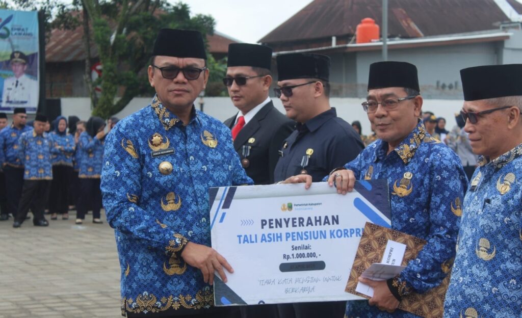 Dalam rangkaian kegiatan, pemerintah daerah juga memberikan tali asih kepada Aparatur Sipil Negara (ASN) yang memasuki masa purna bakti.
